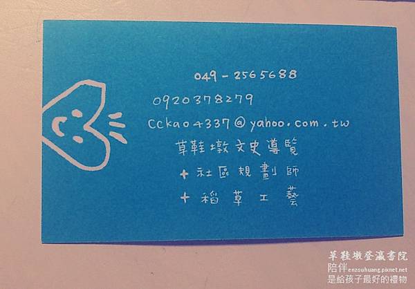 清誥老師的名片,當然也是亮今今幫他畫的囉~超級可愛的。