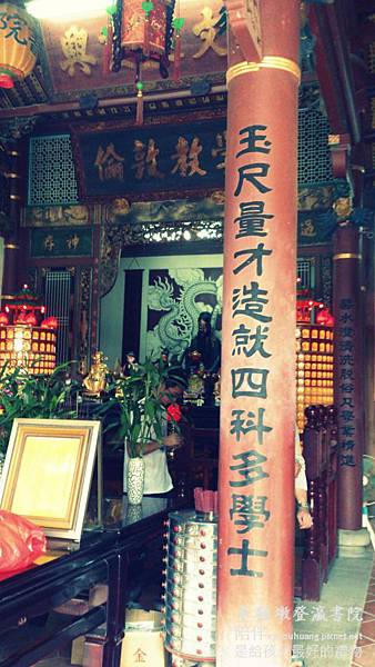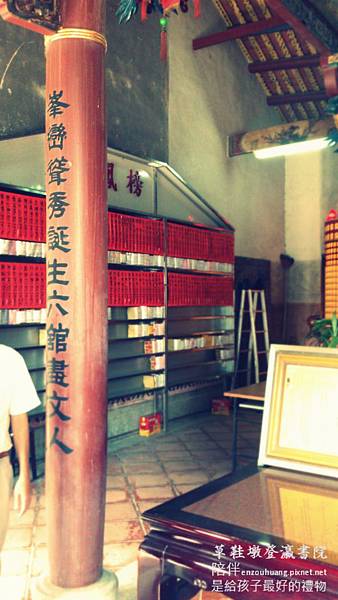 四個柱子上的對詩,每一句詩的第一個字,點出當時捐贈學田的其中兩個詩社「玉峯」「碧峰」的名字。