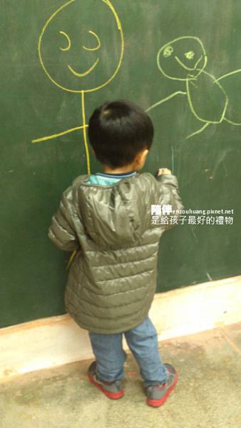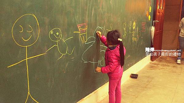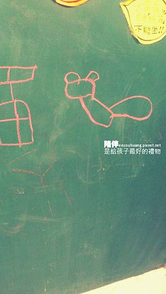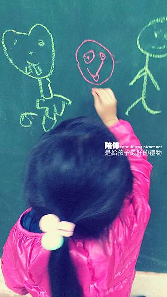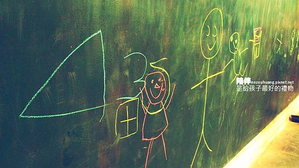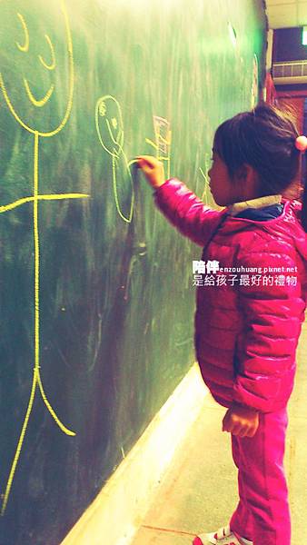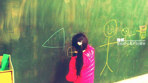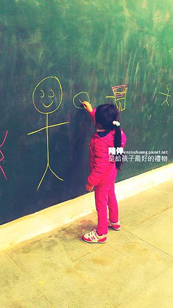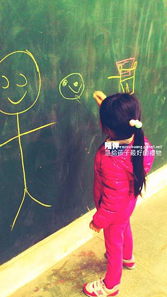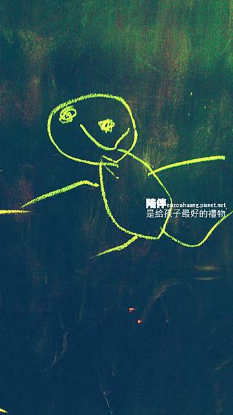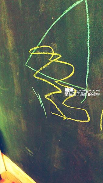 ▼我還想,安妮最近最喜歡的「昆蟲迷宮書」要怎麼畫?這小子不按牌理出牌,竟在大黑板上畫了一個大便,說:最喜歡的是大便書(題外話:應該是到了對髒話有興趣的第一個成長期,而,大便、小便這類詞彙對他們來說,已經算是髒話的一種了)。