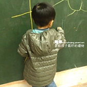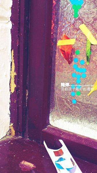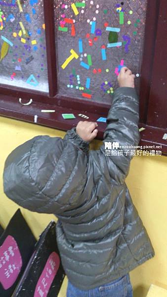 ▼佐弟不會寫字,指令只能完成一半,但他很認真的把葉子貼到窗戶上喔!