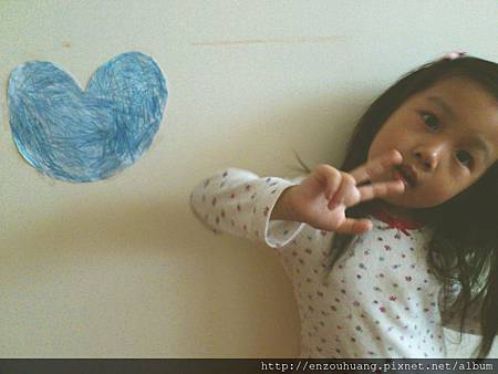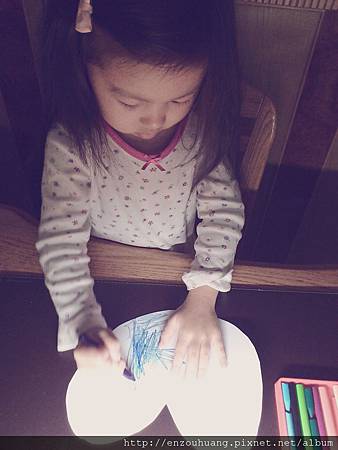當媽媽躺在床上餵哺弟弟,安妮在爸爸的書桌前,要將這個愛心填滿顏色。